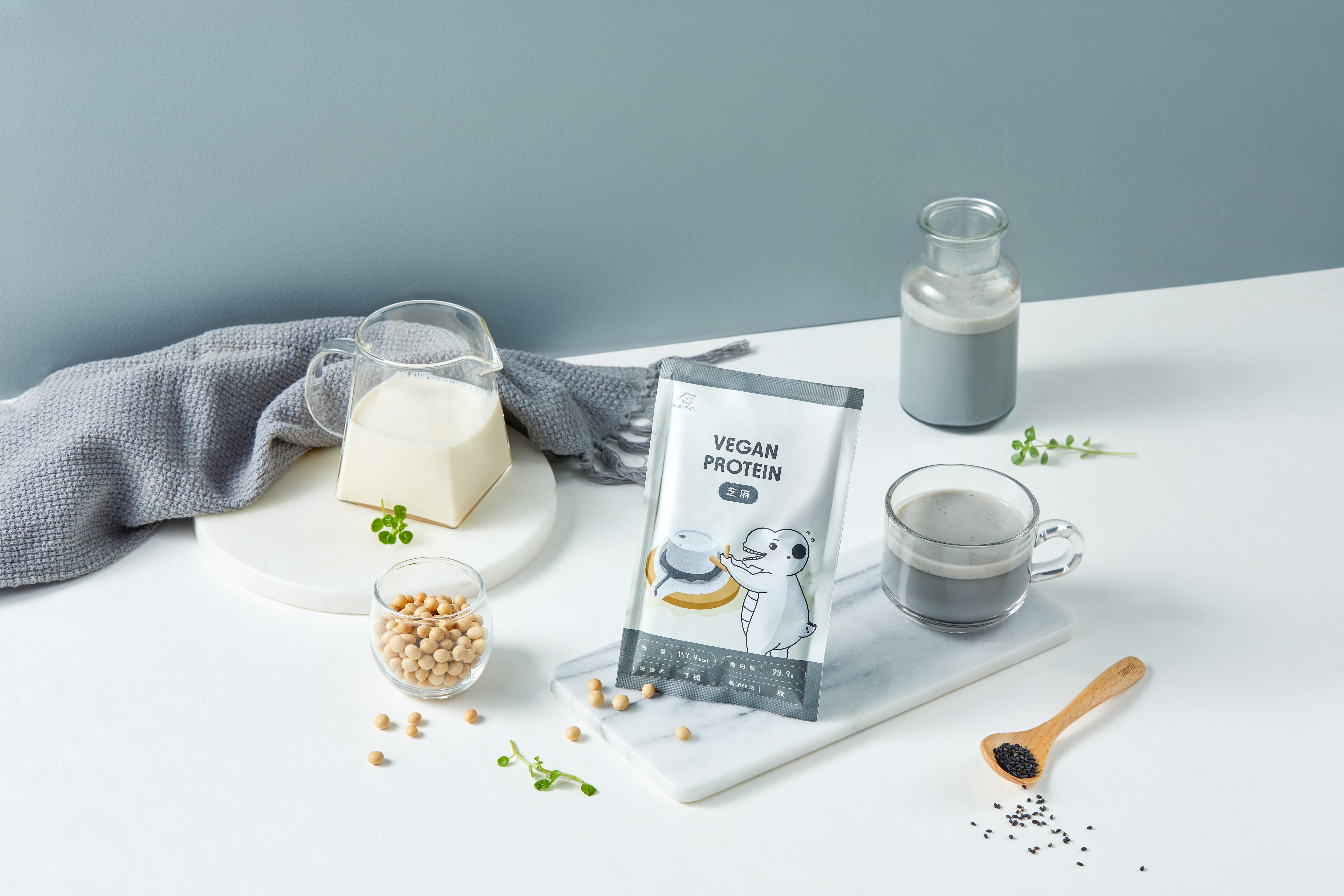 1. 全素植物性蛋白飲,採非基改分離大豆蛋白,安心爽快喝